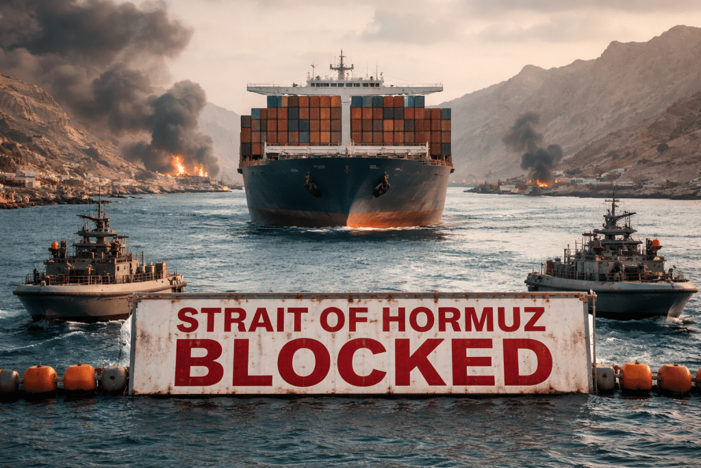 The blockade of the Strait of Hormuz directly impacts international containerized maritime transport.