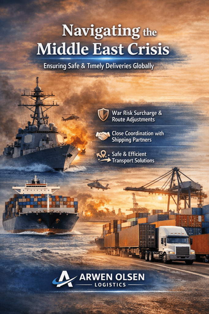 The team at Arwen Olsen is actively working to ensure that all your shipments reach their destination safely. We monitor developments daily. We maintain direct contact with shipping lines and local partners. We secure alternative routing options when restrictions arise. We review each shipment individually and confirm the safest available solution.